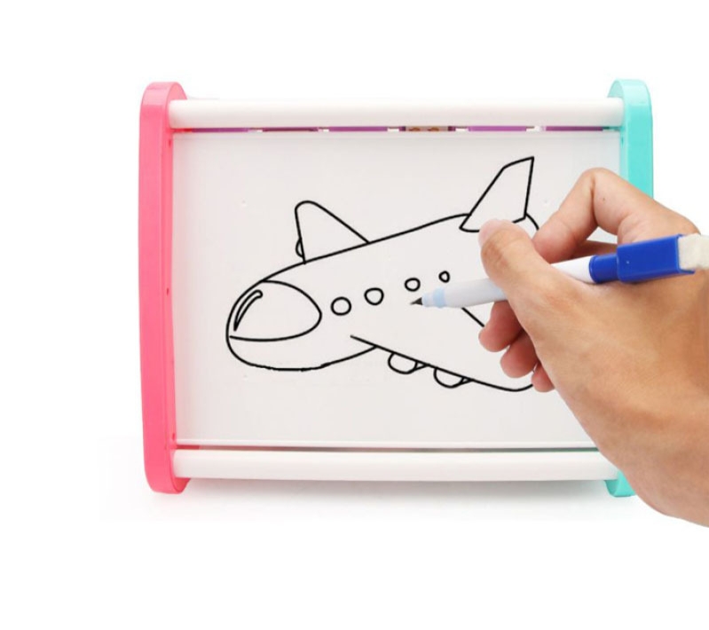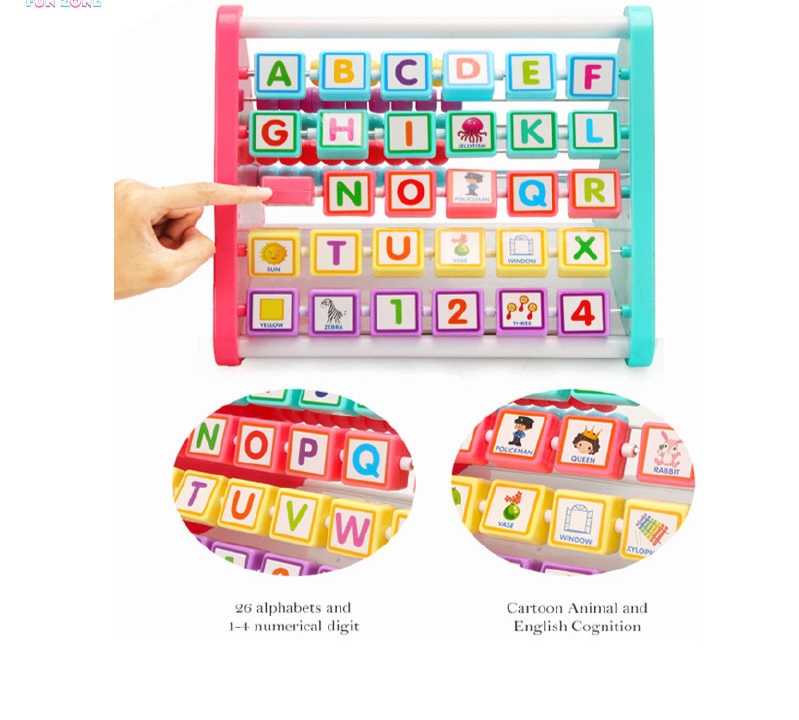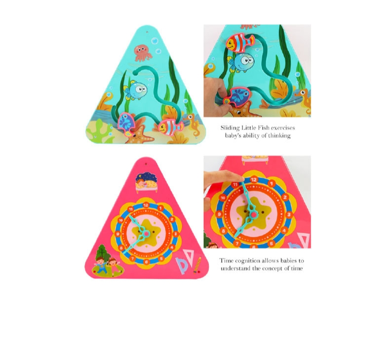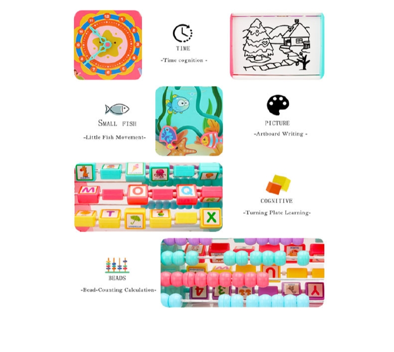 5 Sided fun activity triangle – includes creative alphabet cubes, teaching time clocks, abacus, and drawing board, fish rail.