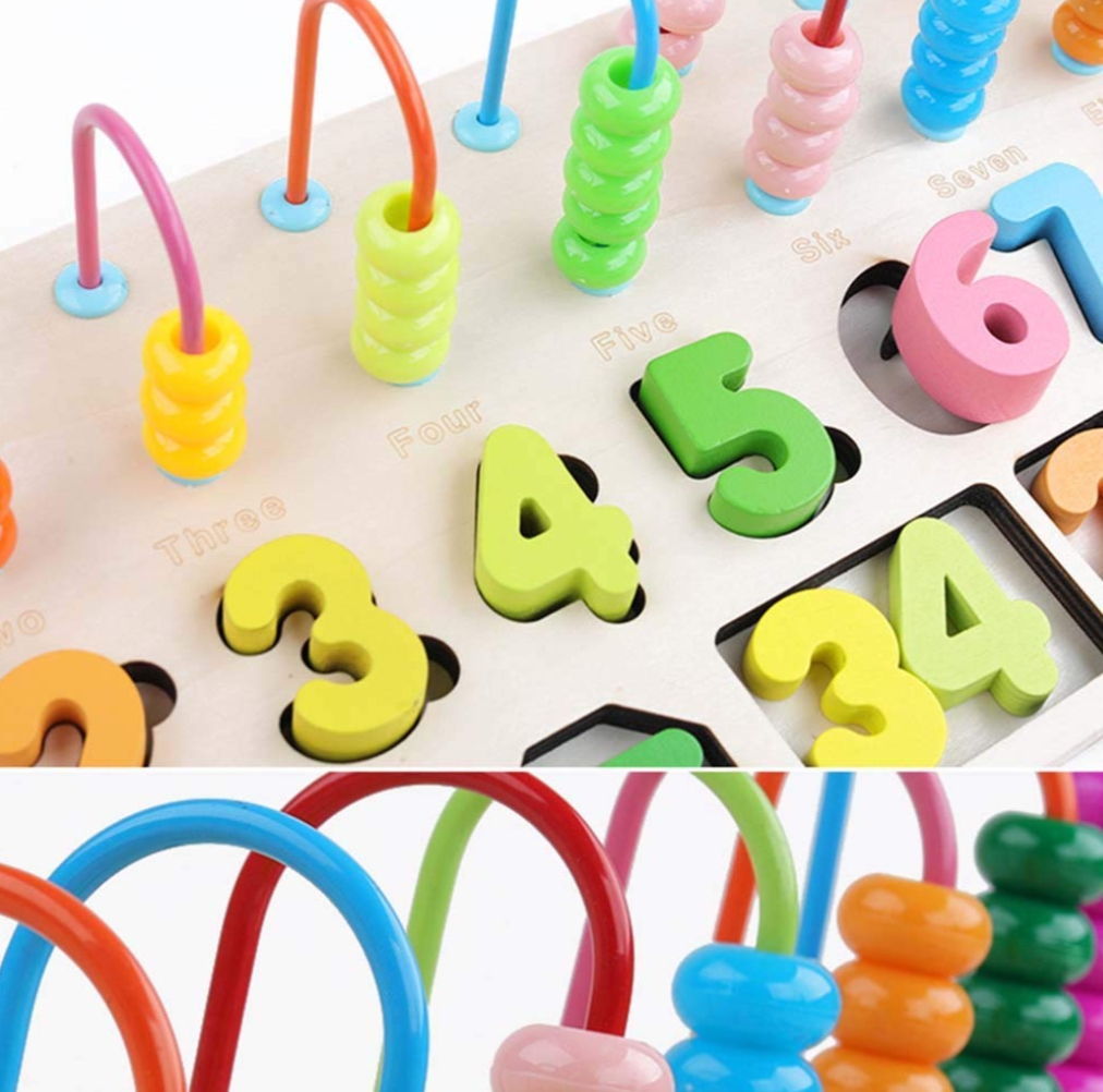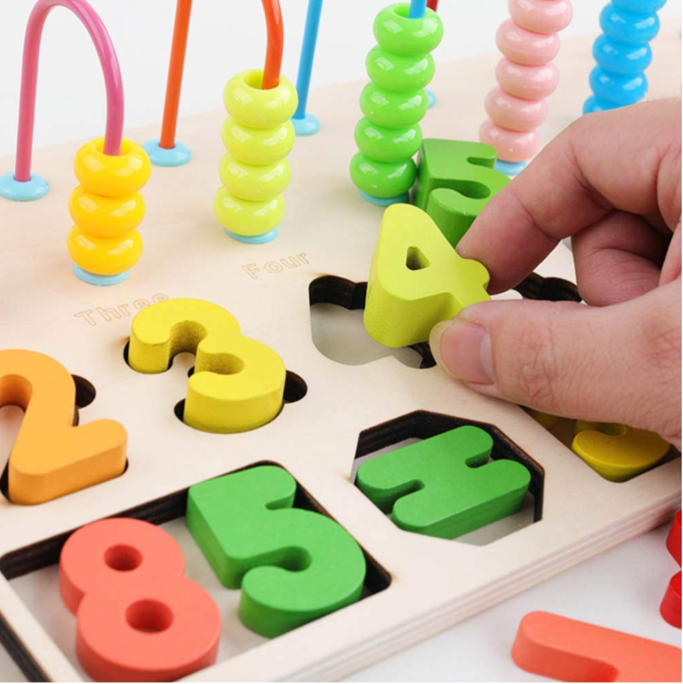 Wooden Blocks Puzzle Board Beads Mazed Set Learning & Educational Toys for Number Counting Colors Stacking Shape Sorting Early Education Toy