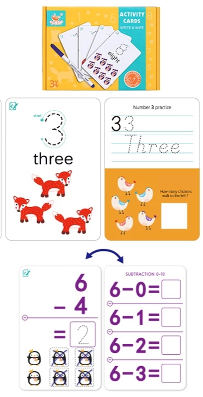 ‘@This Write & Wipe learning cards pack helps with kids In Numbers,Addition And Subtraction.