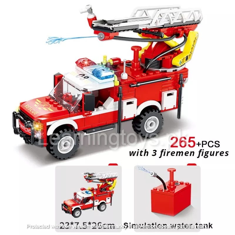 Assembling Fire Truck With Water Spray Lego Blocks – 265 Pieces