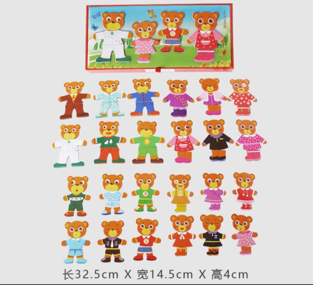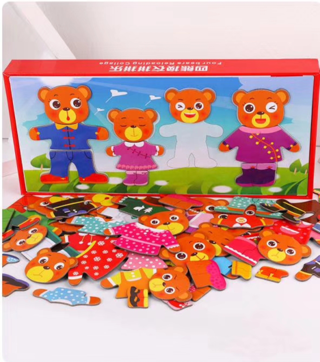 Dress-up bear puzzle helps to encourage multiple development skills such as color,Shapes,Cloth Match Up With This Toy and pattern recognition, creativity,Imagination,Dexterity and hand-eye coordination.