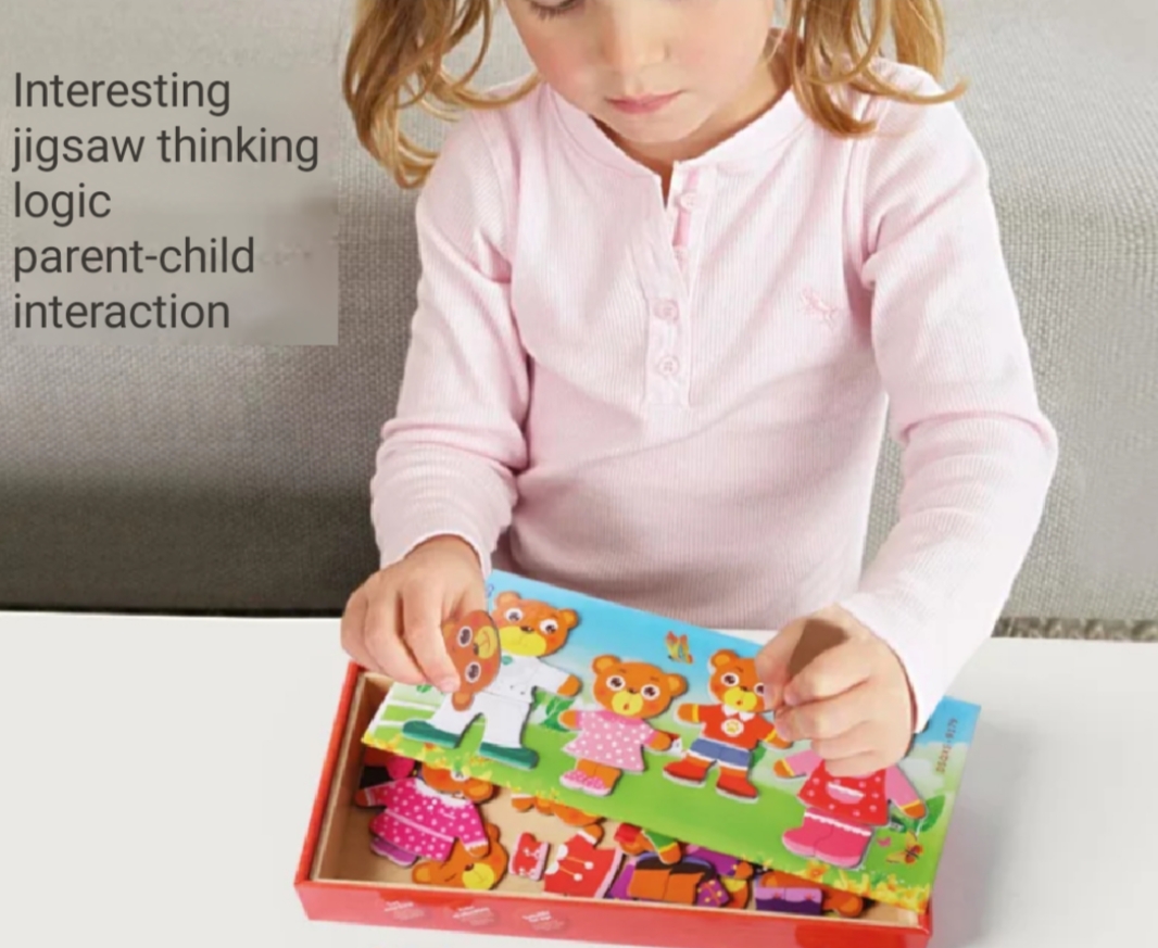 Wooden Magnetic Bear Change Clothing Jigsaw Puzzle for Children Kids Early Education Intelligence Developing Learning Toys