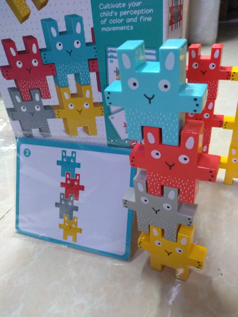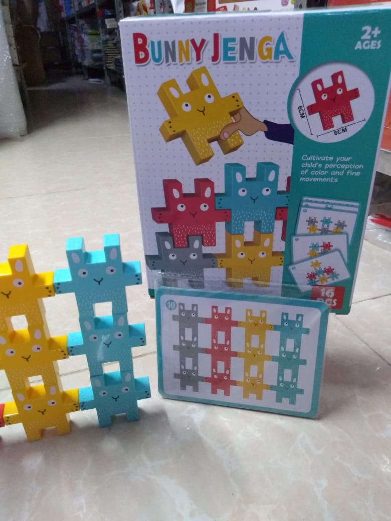 In the game set: figures of different colors and cards with tasks. Jenga has a beneficial effect on coordination, fine motor skills, develops quick reaction, logical thinking and many other useful skills.