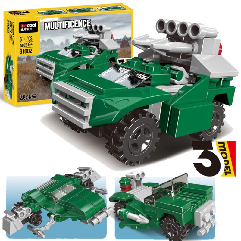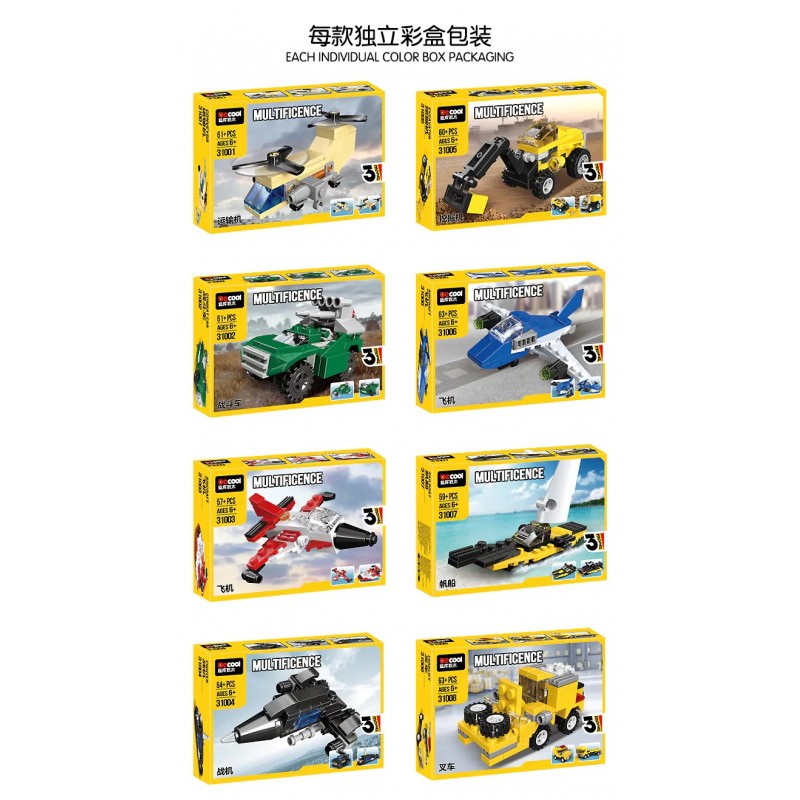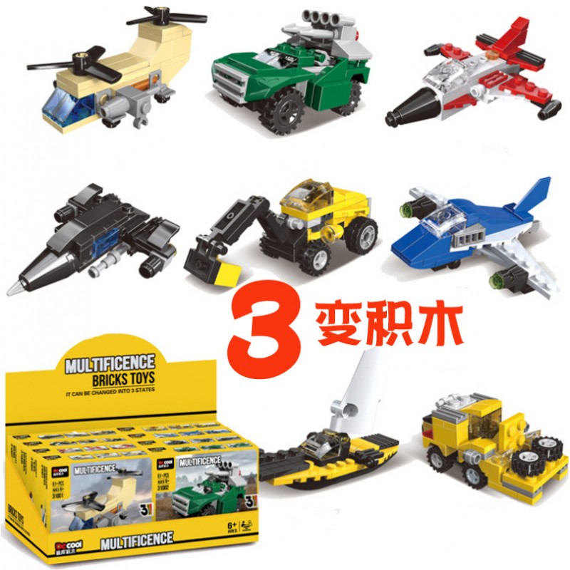 Each set is marketed as a “3 in 1” model, allowing kids to build different variations.