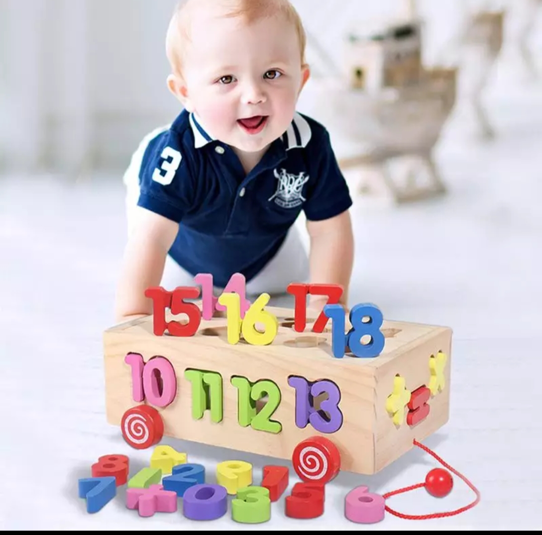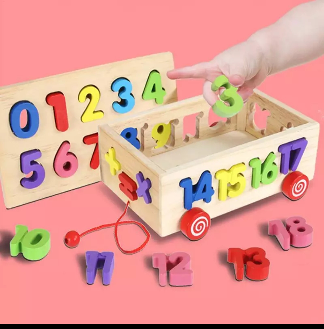 Digital wooden sorter with pulling car for toddlers, it is very easy for kids to learn digits by sorting numbers on its right place,exercise hand to eye coordination,brain development,mathematics learning,ability of cognizance of different signs for mathematics,sensory development,meta cognitive thinking,exploratory game,visual discrimination,operational ability