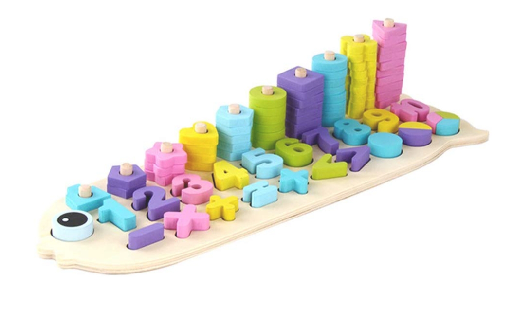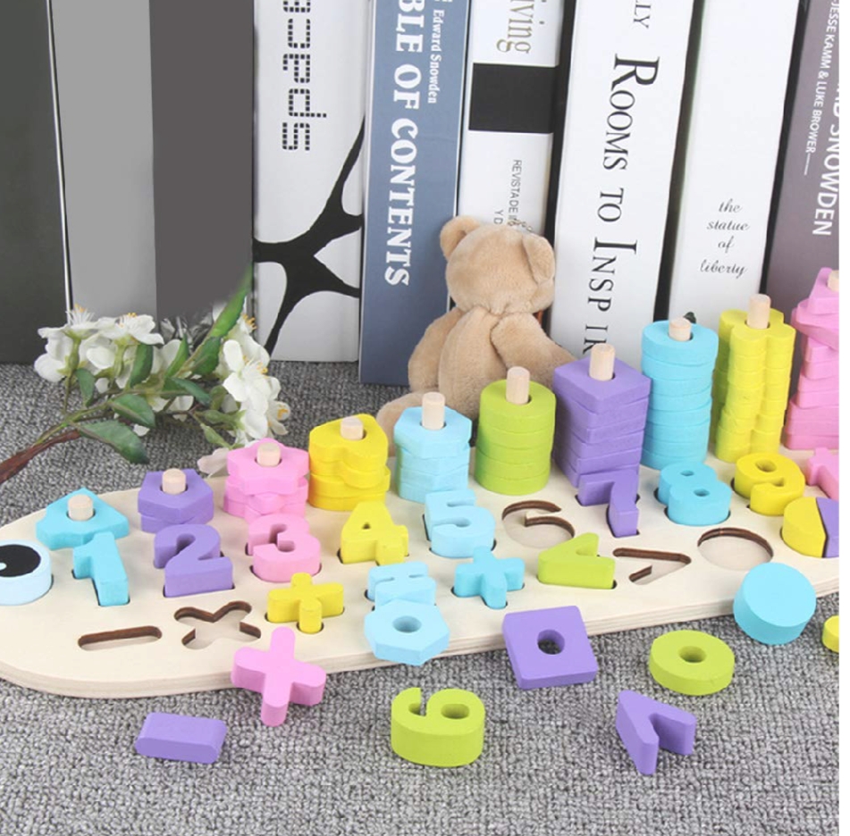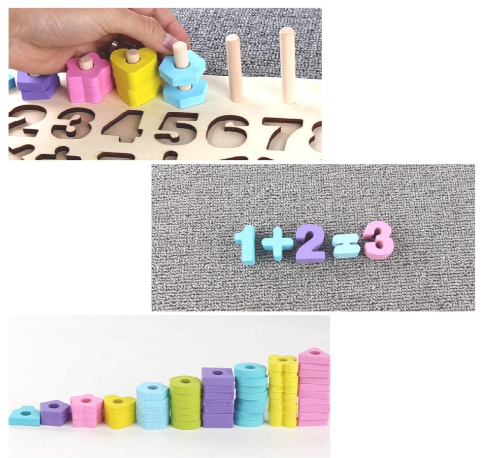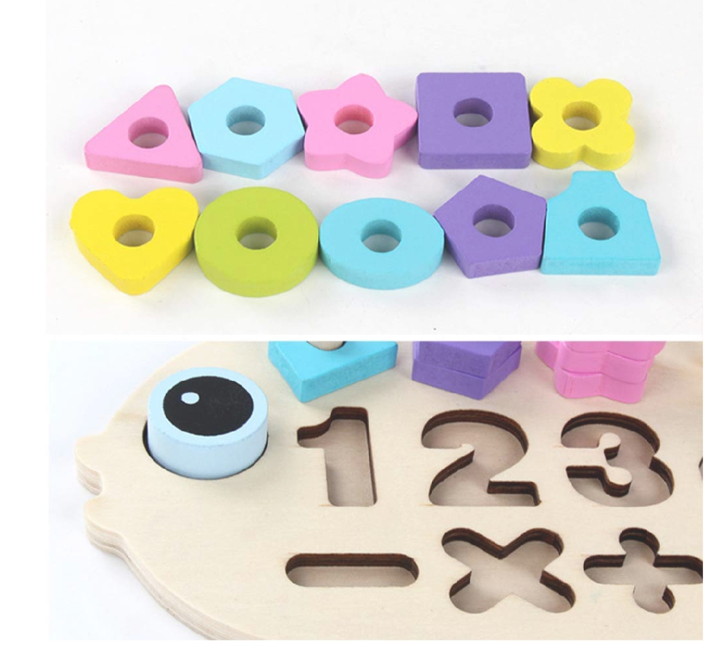 - 55 Wooden Counting Colored Rings With Different Shapes