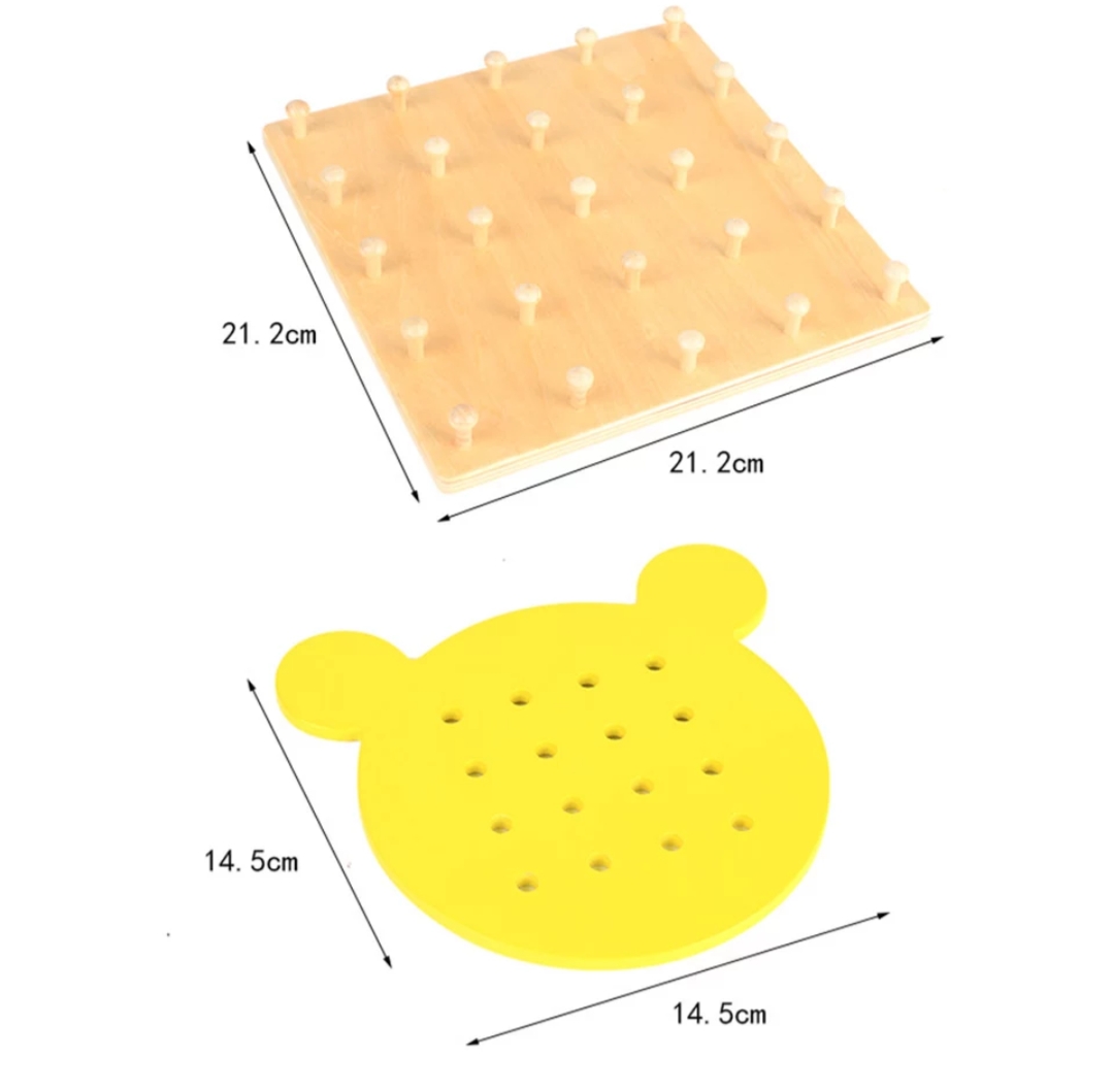 Hand Eye Coordination,Promote Fine Motor Skills,A Peg Board On Which Elastic Bands Are Used To Make Shapes And Patterns Like Animals,Numbers,Shapes,Letters,Diagrams,Flowers.Umbrella Head Pins Keep Rubber Bands In Place As Kids Make Designs,Isometric Models Allow For Making Of Hexagons And Equilateral Triangles