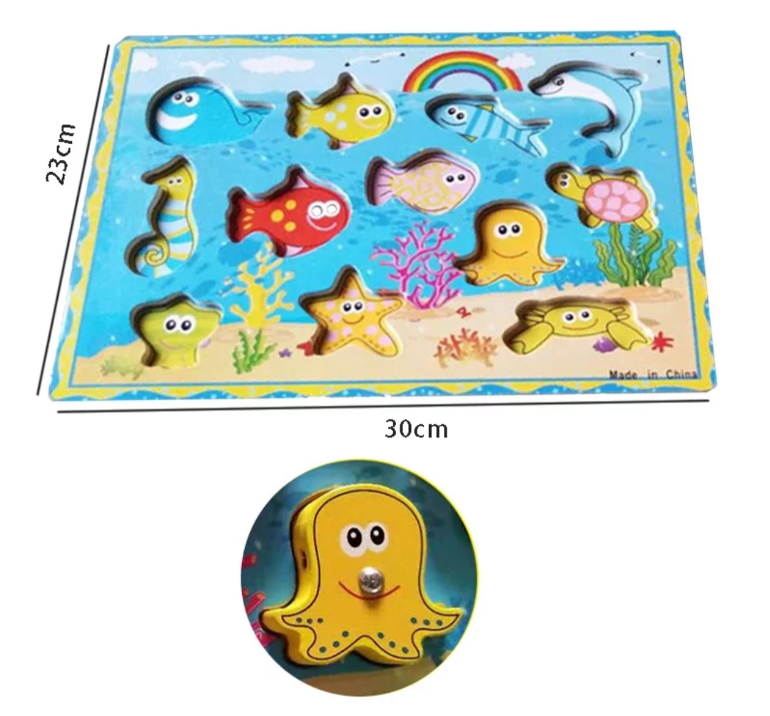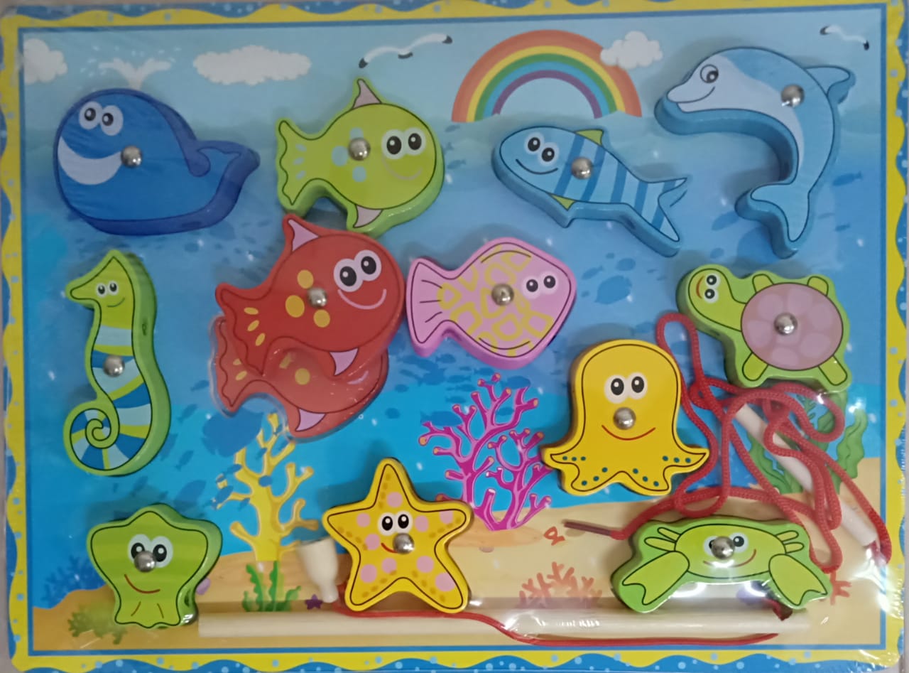 This Fish blocks lacing game is an ideal toy for children to learn colors and shapes, a different category of objects, to practice concentration, hands-on ability, creative thinking and eye To hand coordination and preparation for tying laces. It is great for children’s games.