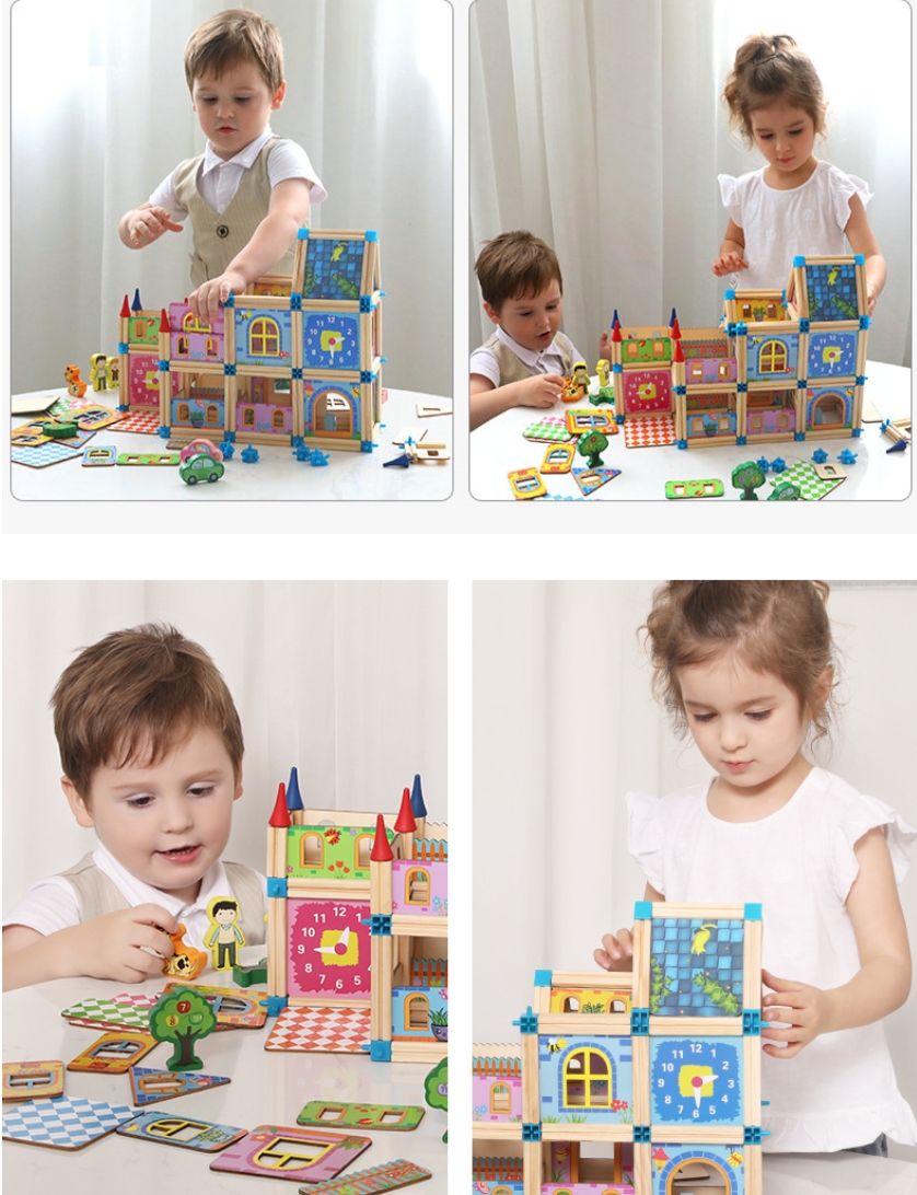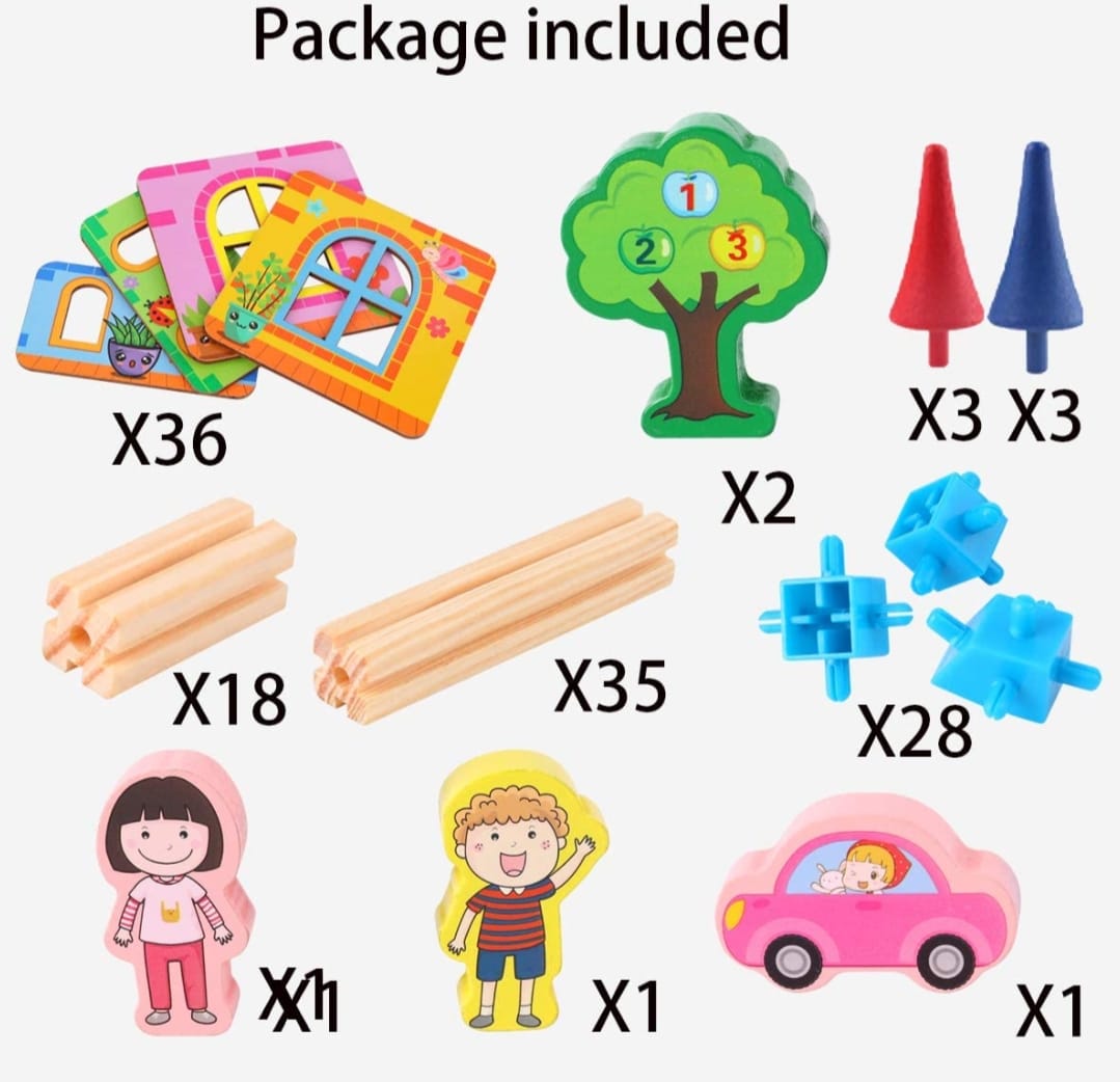 • Each wooden piece is easy to hold and stack, so your little builders can explore design and construction from an early age. Young architects can bring their designs to life and build their miniature dream home.