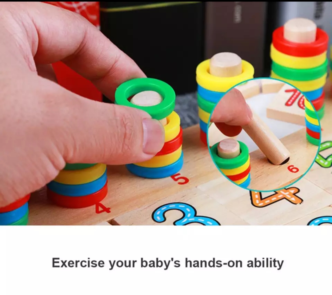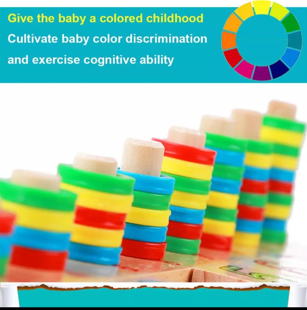 - 10 pegs for the child to stack the colorful 55 rings on.
