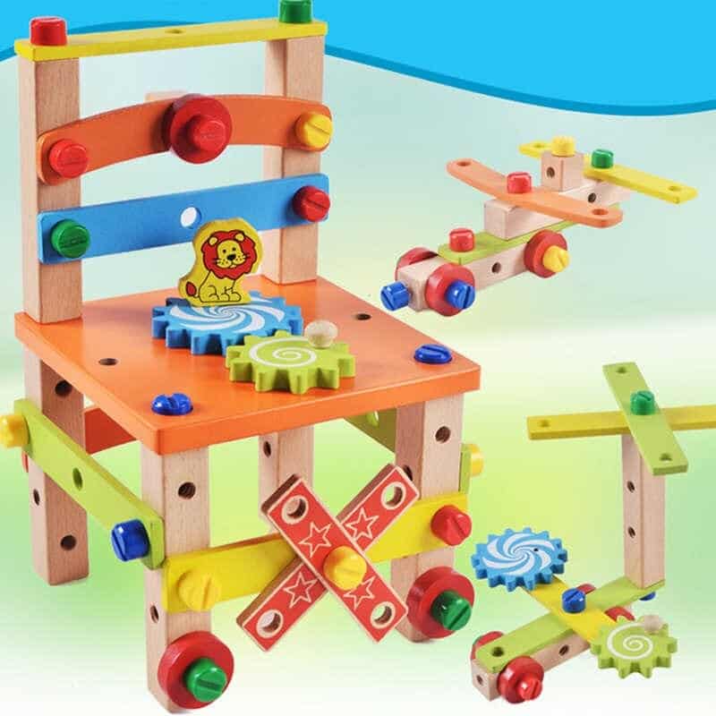 Multi Functional Assembling Creative Chair Wooden Nut Combination, Educational Learning PreSchool Toy. Hand Eye Coordination, Color Cognition Shape Learning, Thinking Training, Hand Grasping, Brain Development, Intelligent Exploitation.