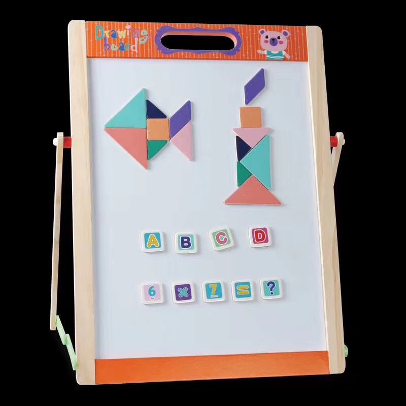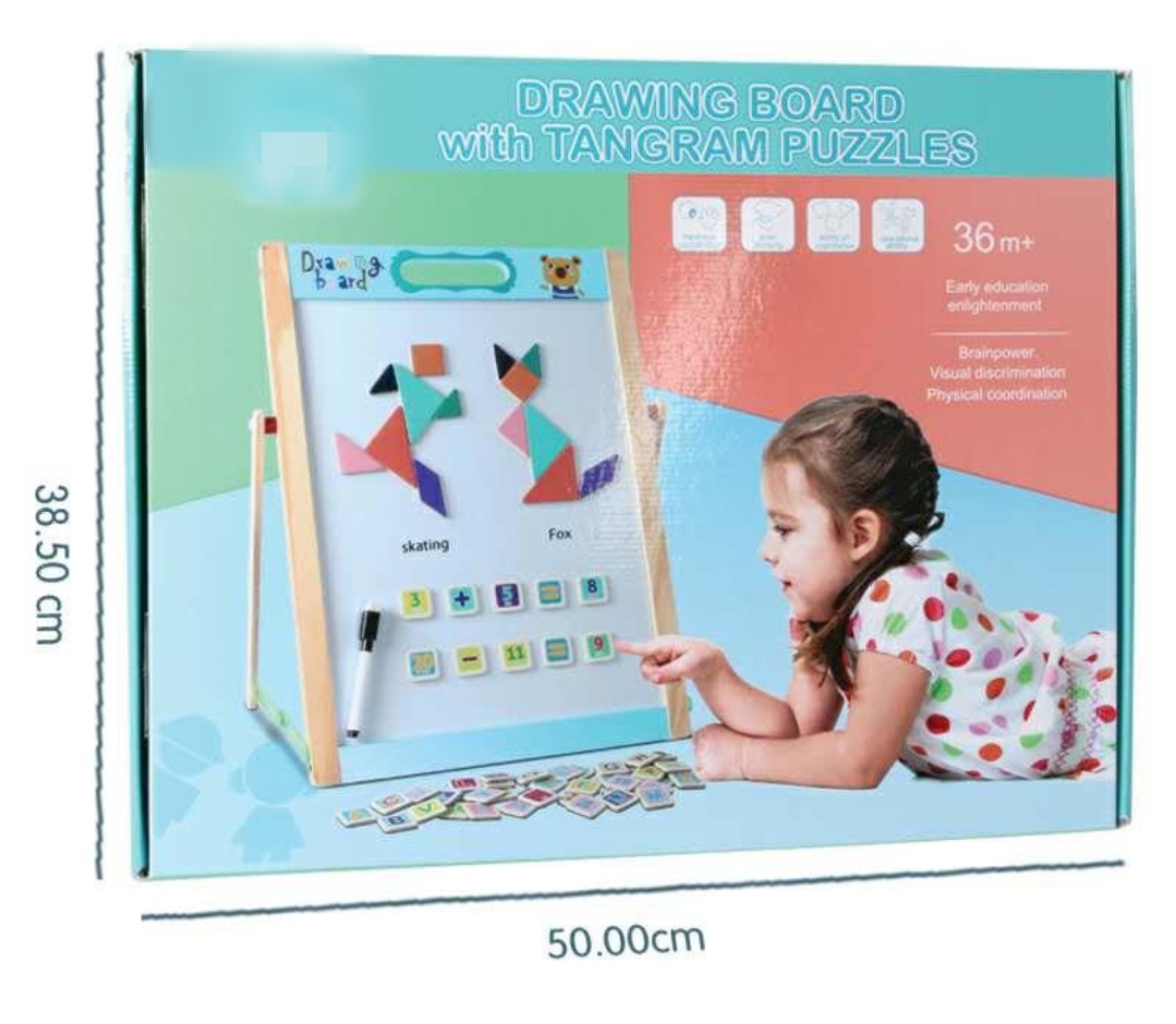 Multipurpose Double Sided Magnetic Drawing Easel with Tan gram puzzles