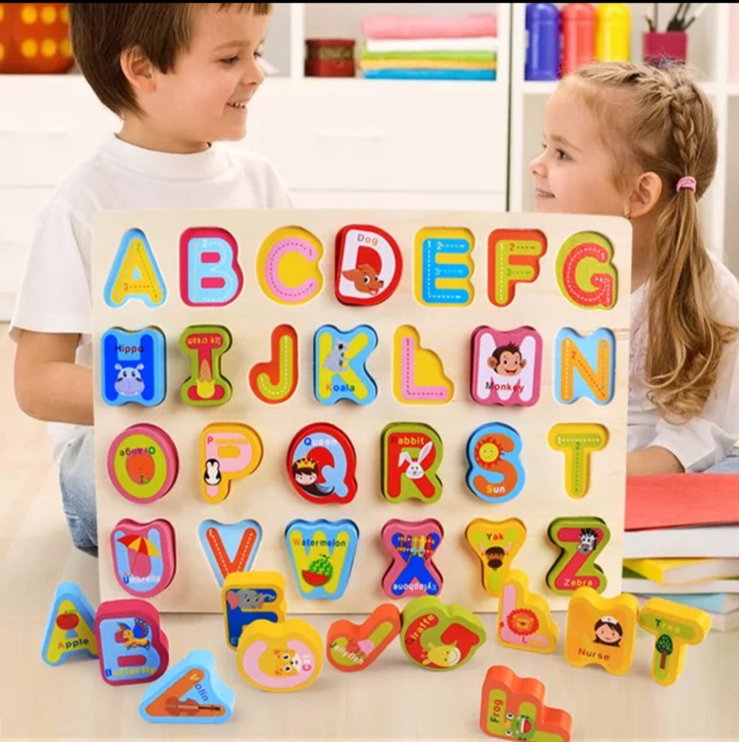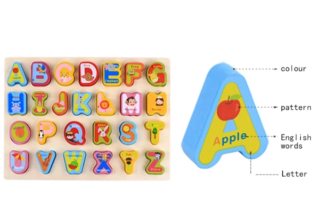 Wooden Alphabet Block Board – A B C Uppercase Letter Learning Puzzle Educational Toys