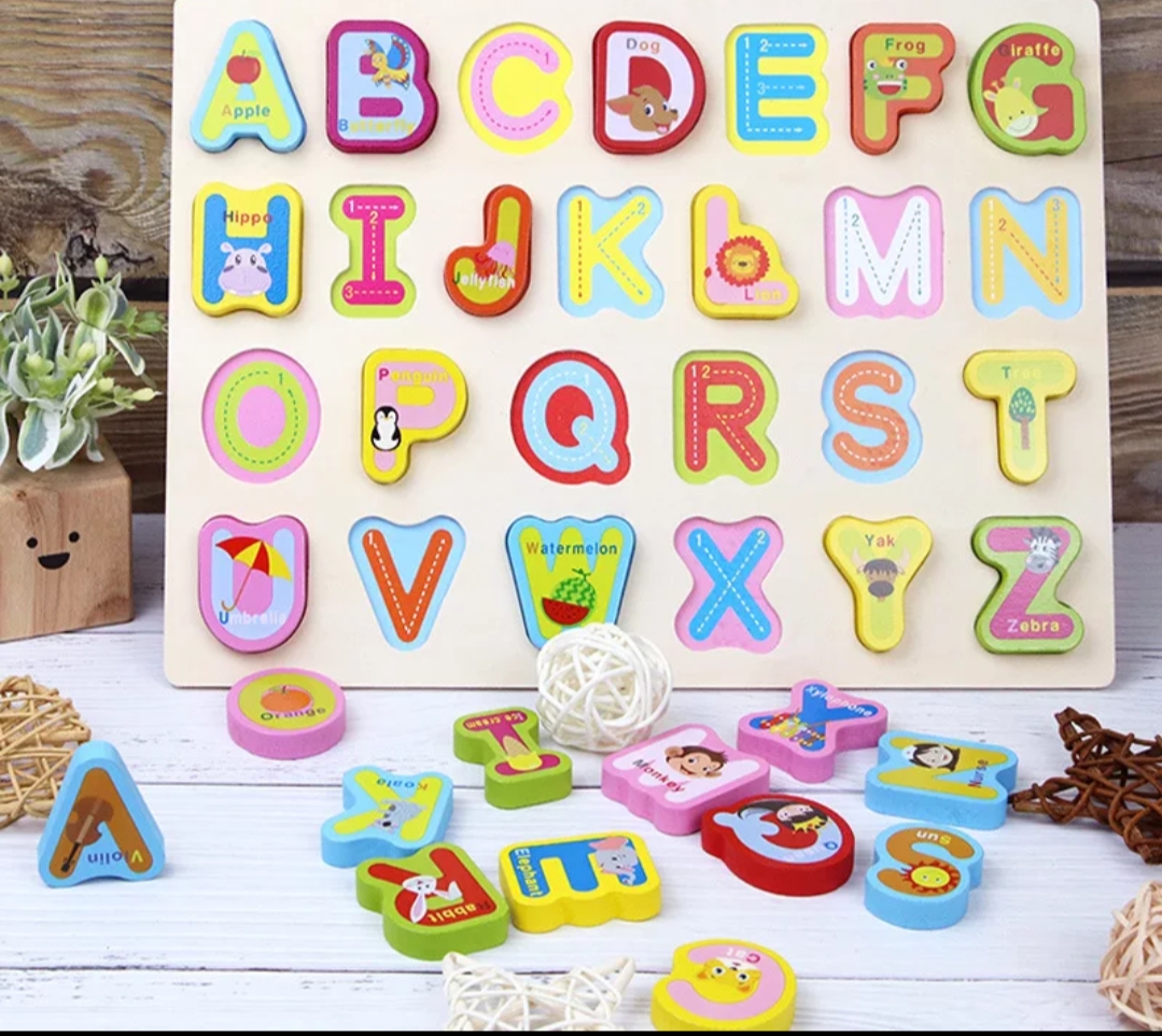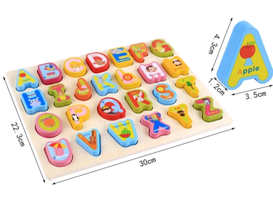 Great Learning Toy,Including 26 uppercase letters to fit into a wooden puzzle board.