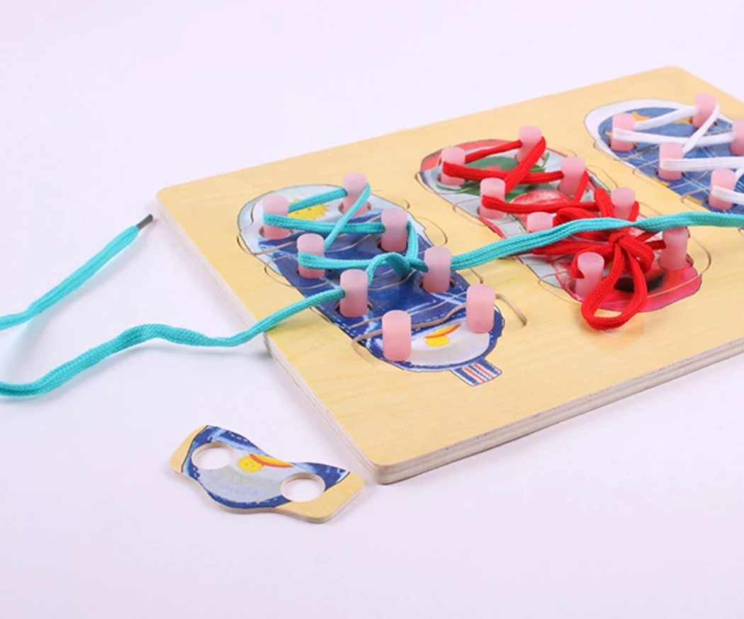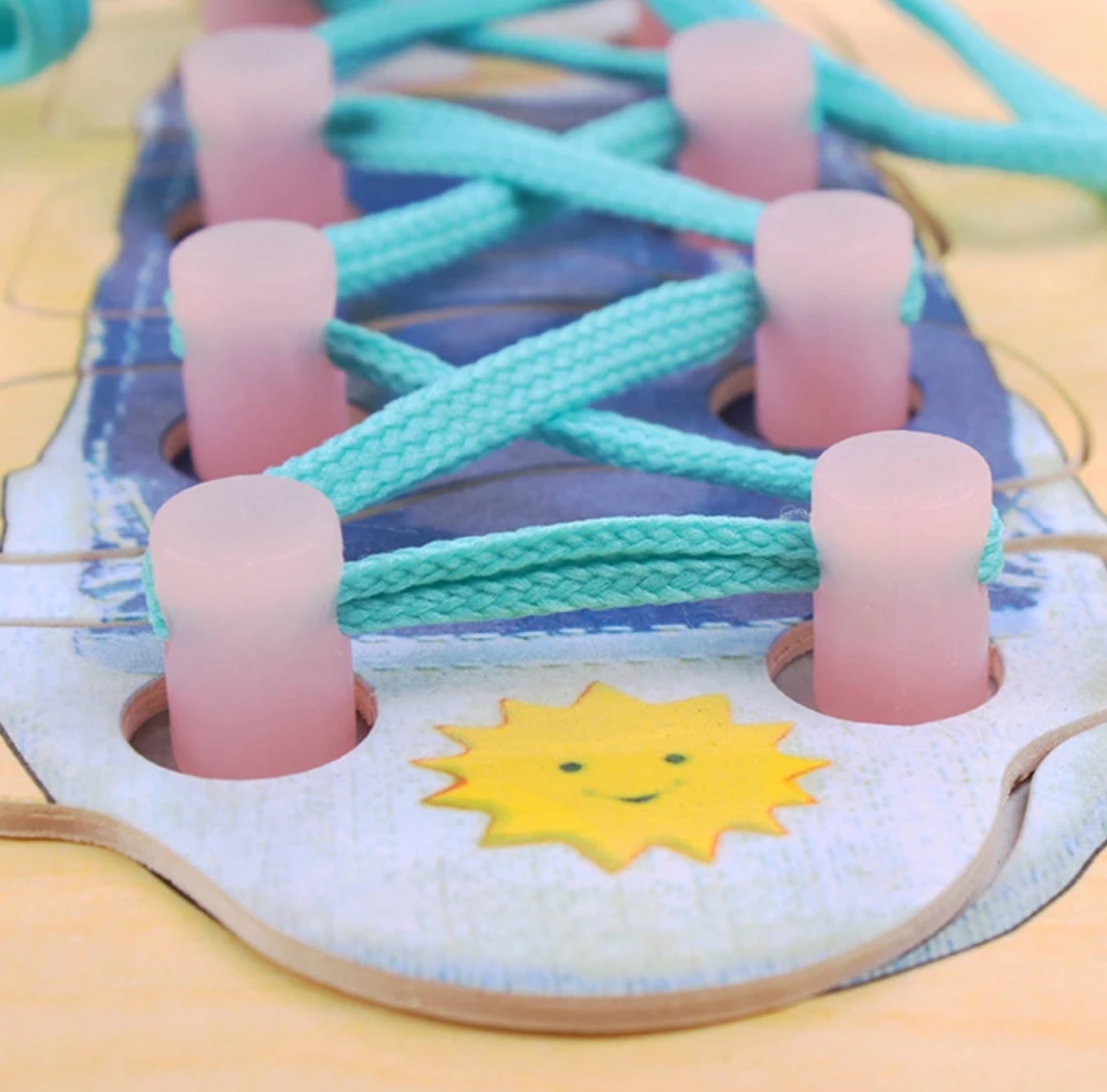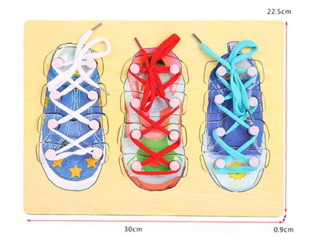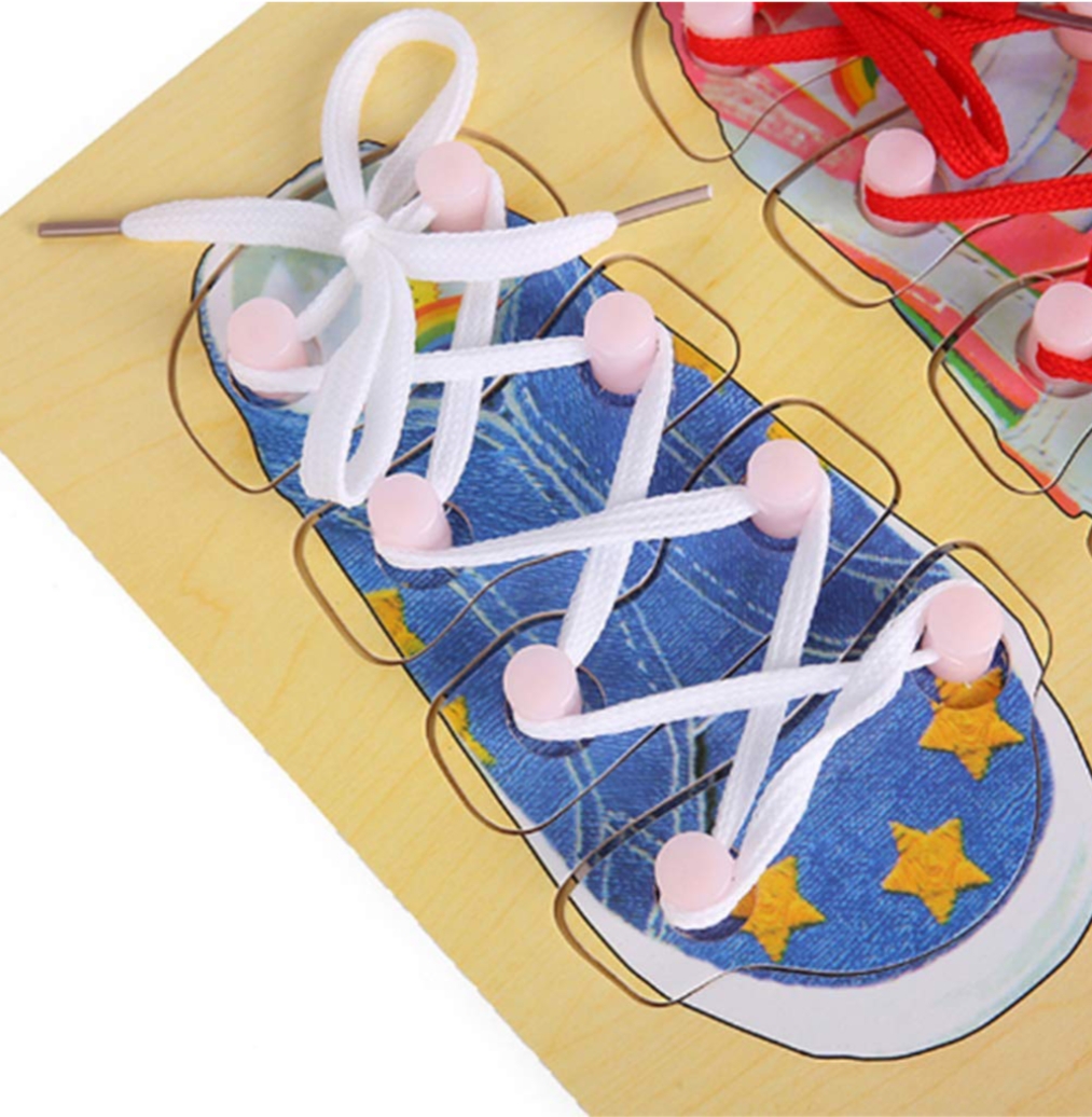 Wood shoe tie practice toys, best toys that parents could use to teach kids how to tie shoes