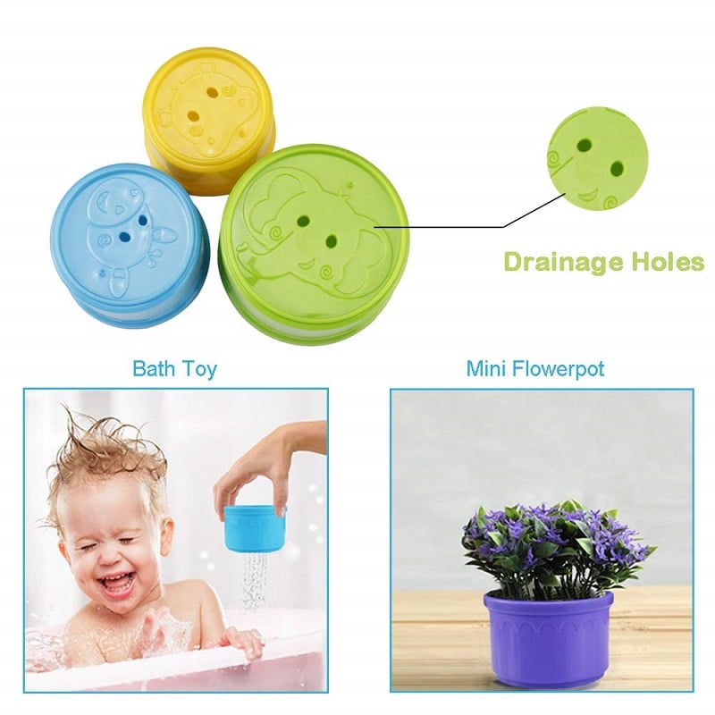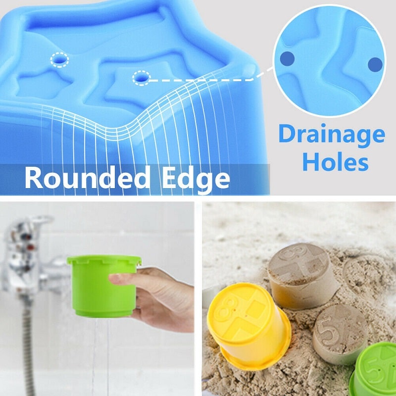 - Baby will enjoy stacking cups higher and higher or putting them apart, scooping water in the bath or filling sand in the beach.Let joy be everywhere!