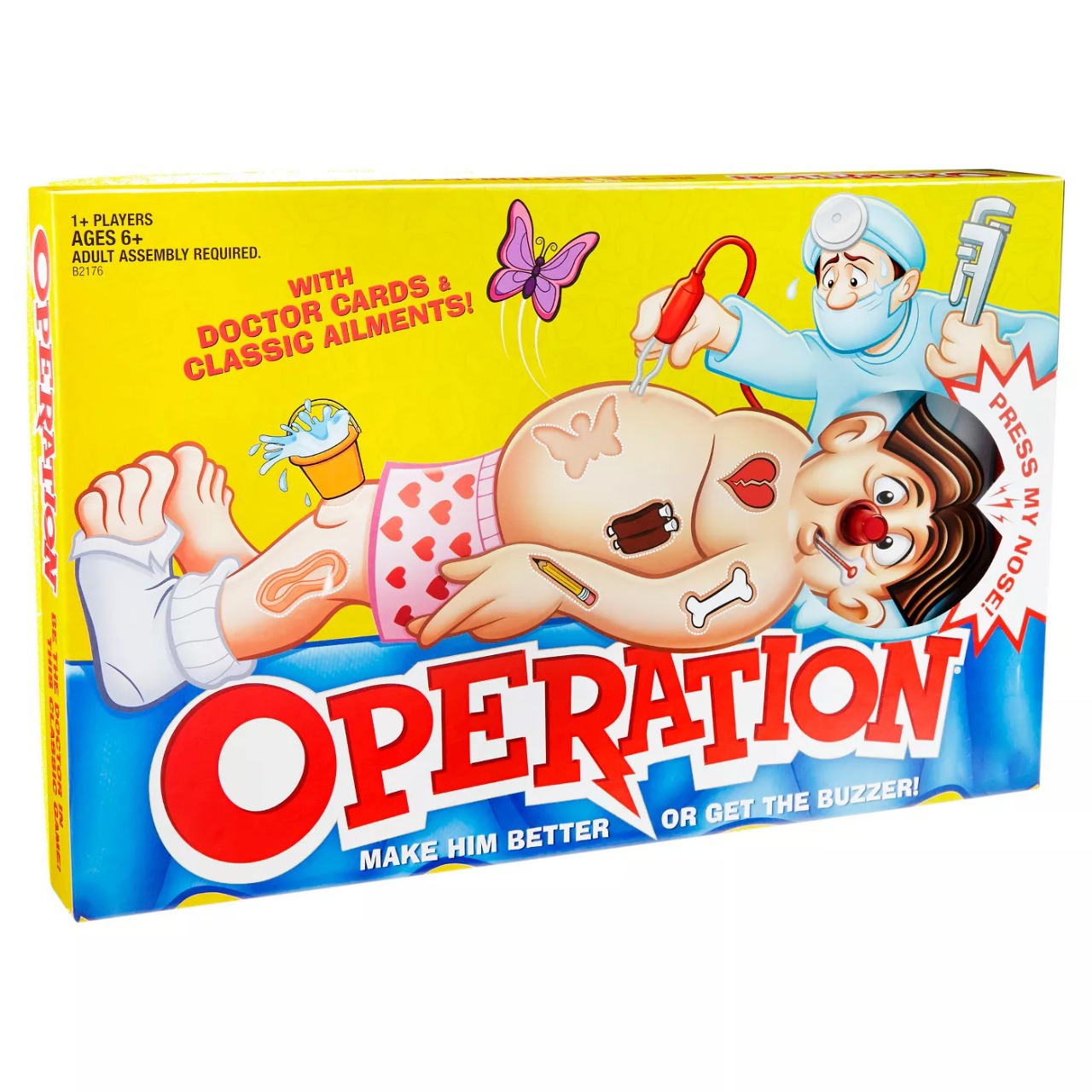 Includes game board, tweezers, 12 plastic ailments (including rubber band), and game guide