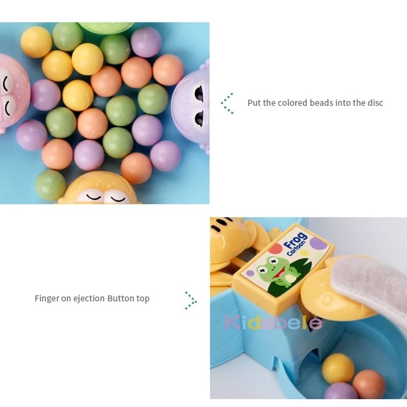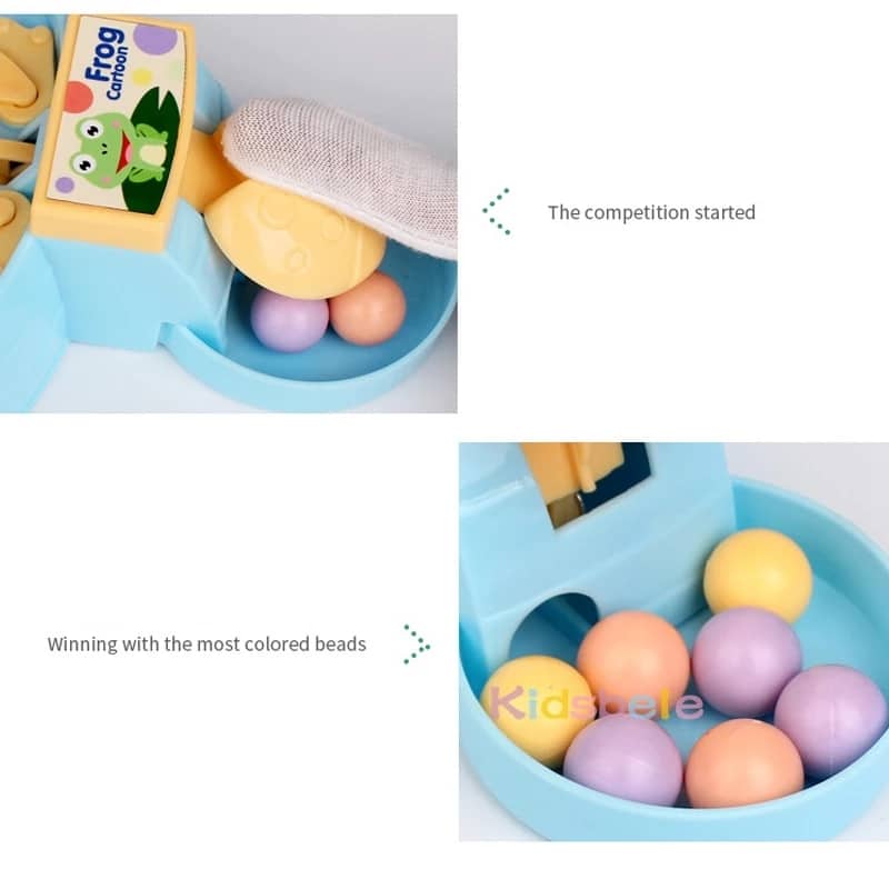 Then the beads will fall into the basins on the back of the frogs and the player who got most beads will be the winner.