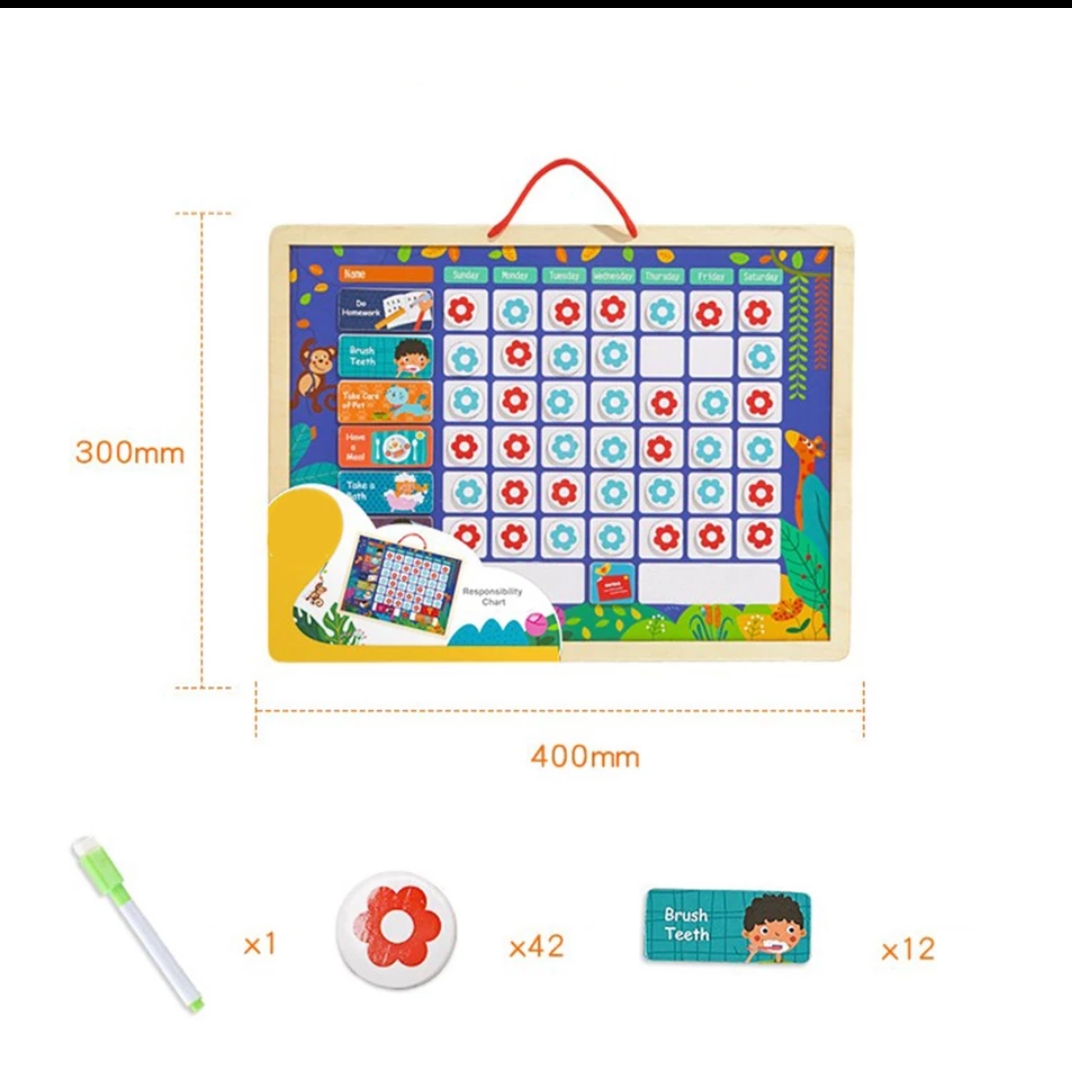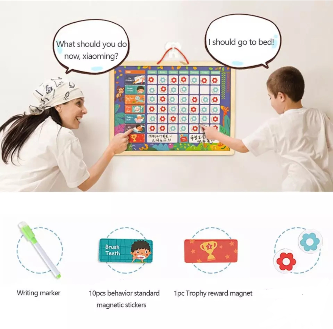 Educational Magnetic Responsibility Chart With Rewards,Play Board For Children,Baby Wooden Behavior Record Board Toy,Helps Your Child Be Responsible,Time Management,Punctuality, Obedient,Self Confidence,Brilliant.