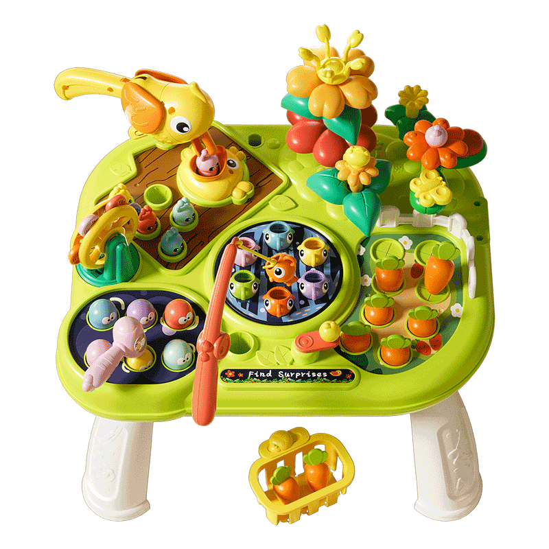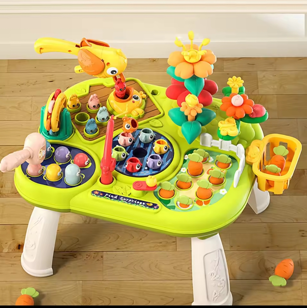 Activity table designed for toddlers. It features various interactive elements to stimulate development: