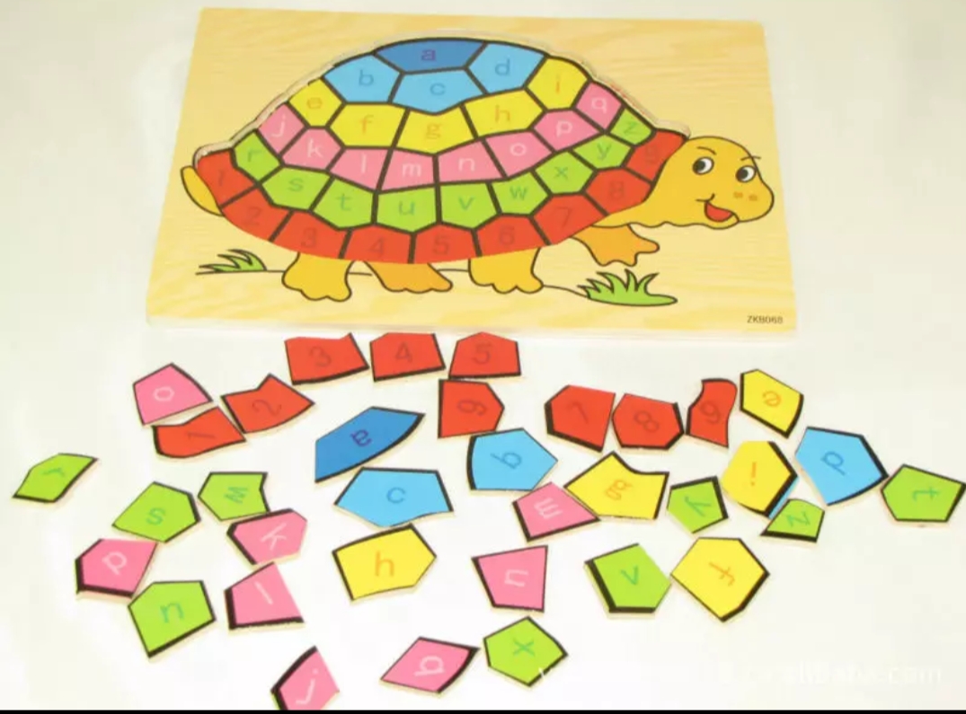 - We present to you a set of wooden alphabet jigsaw toy in bright colors.