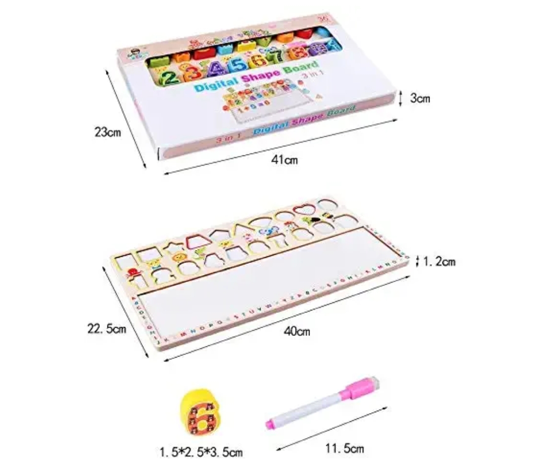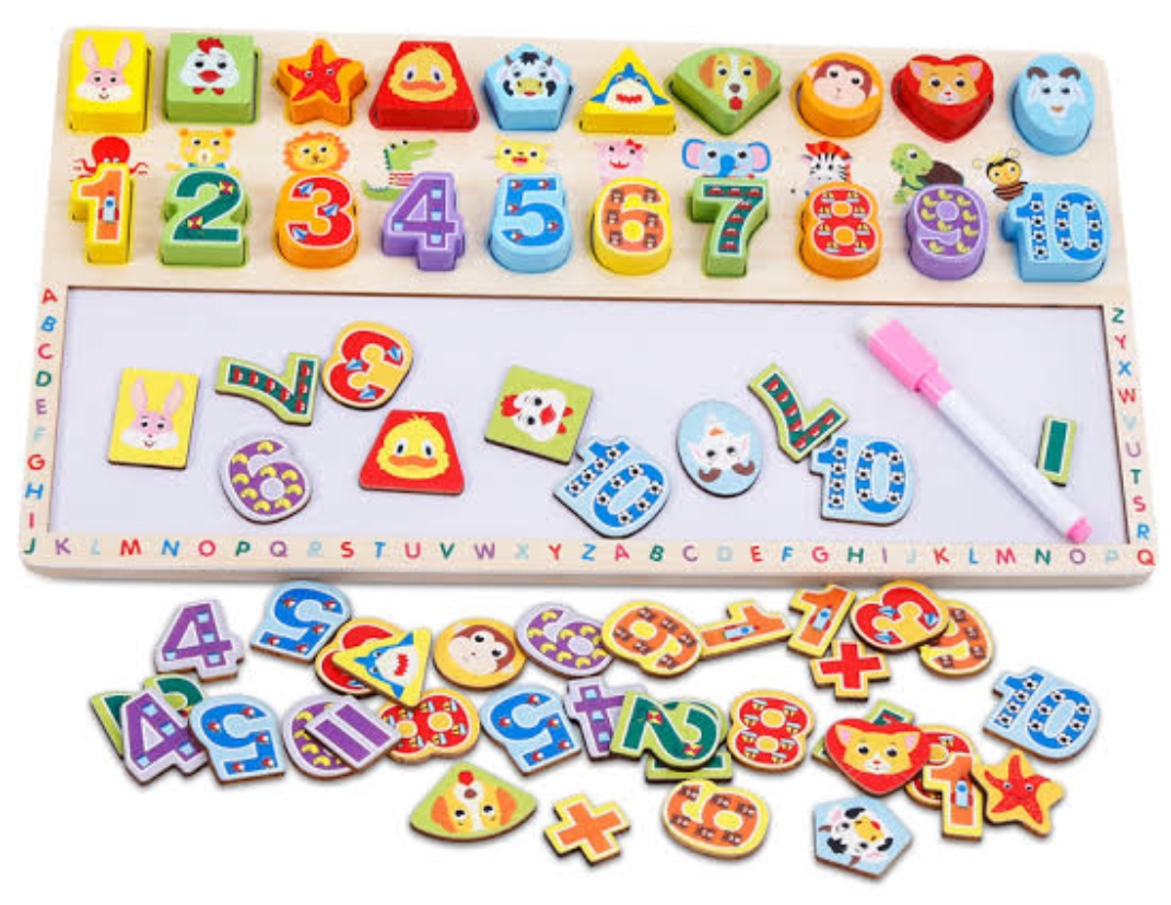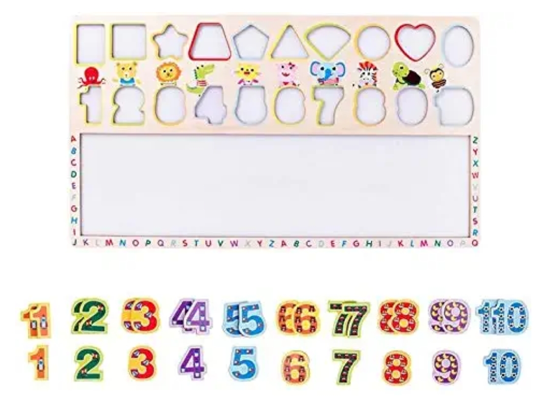 - Wooden 3 in 1 Guide Numbers and Shapes White Board