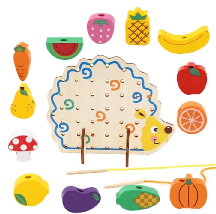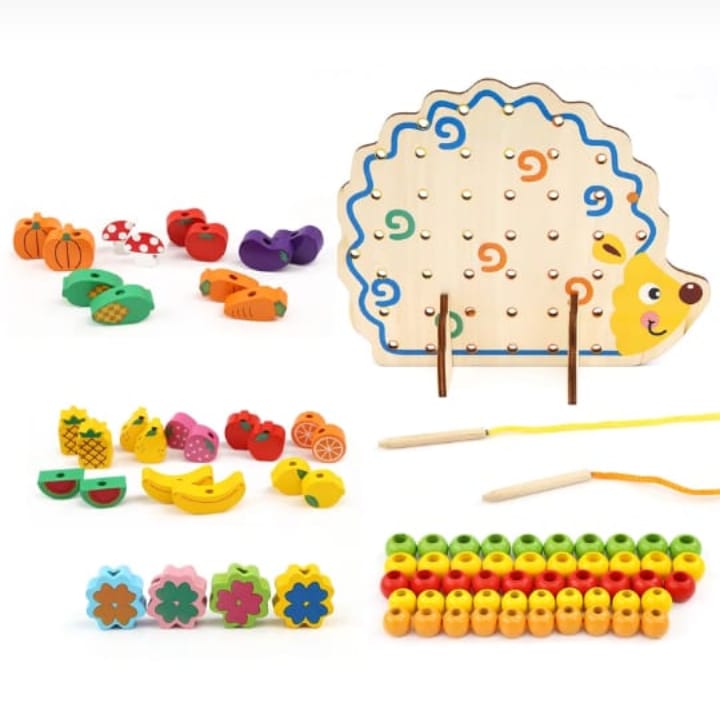 Tags: Art & Craft, beads, brain development, colour perception, educational toys, fruits lacing, hand eye coordination, hand grasping, lacing, learning toys, shapes recognition, strining beads, threading